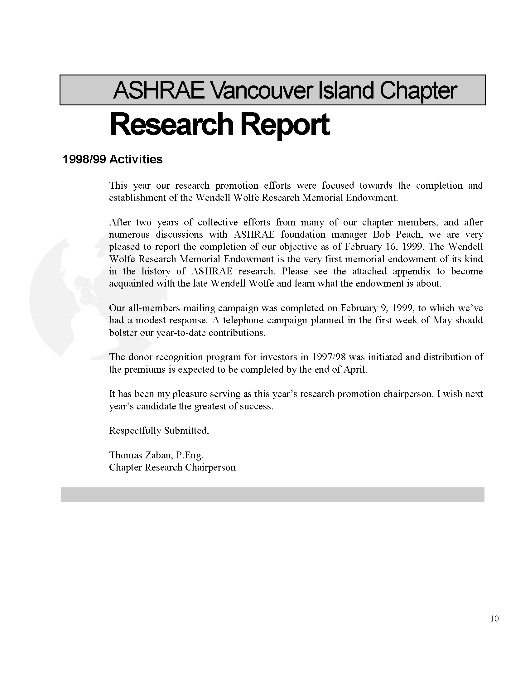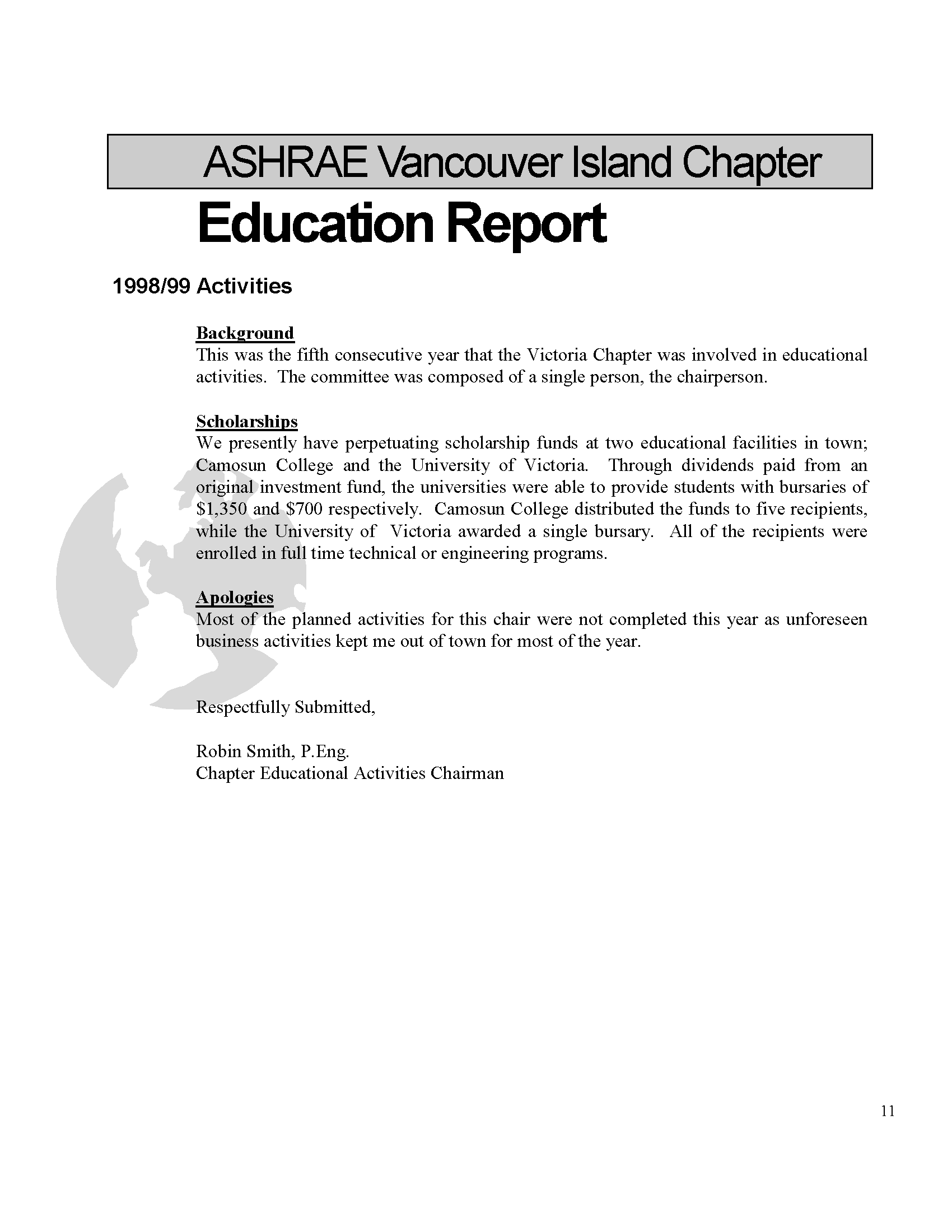 Vancouver Island ASHRAE Chapter Endowment Scholarship